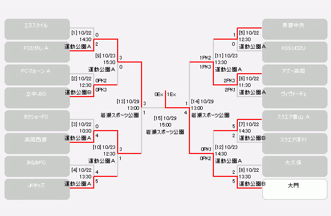 FCひがしA 0-1(前半0-0、後半0-0、延長前半0-0、延長後半0-1)大門少年サッカークラブ