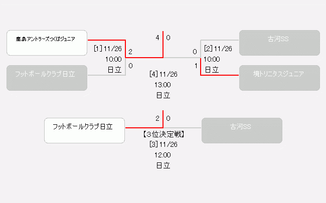 鹿島アントラーズつくばジュニア 4-0(前半1-0) 境トリニタスジュニア
