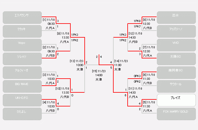 ブレイズ熊本ジュニア 4-2(前半3-1) NPO法人スポーツクラブ・エスペランサ熊本