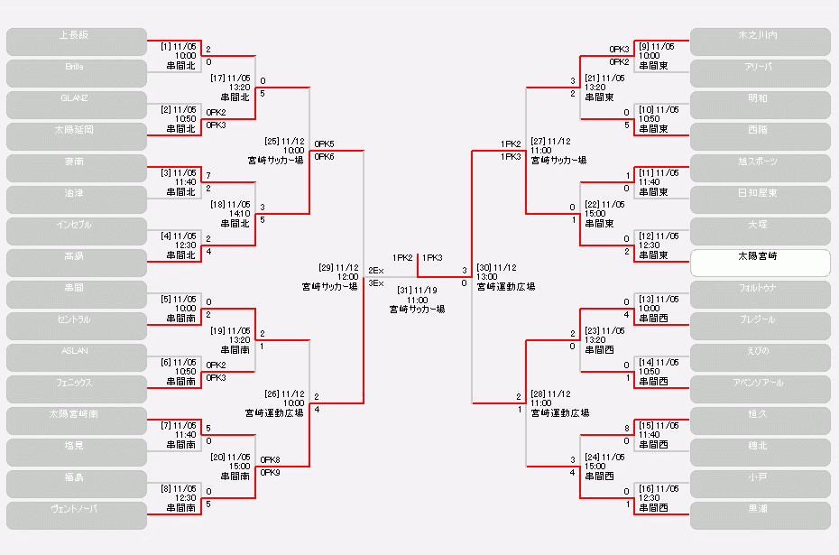 太陽宮崎SC 1-1(前半0-0、後半0-0、延長前半0-1、延長後半1-0、PK3-2) ヴェントノーバフットボールクラブ