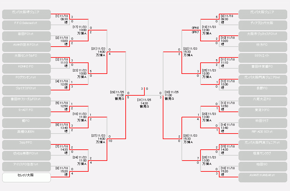第41回全日本少年サッカー大会大阪府大会決勝が11月25日(土)、鶴見緑地球技場で行われました。