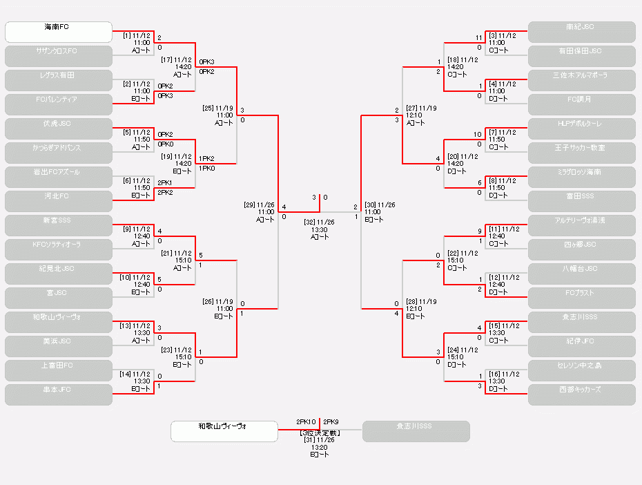 海南フットボールクラブジュニア 3-0(前半0-0) H.L.Pデポルターレ和歌山フットボールクラブジュニア
