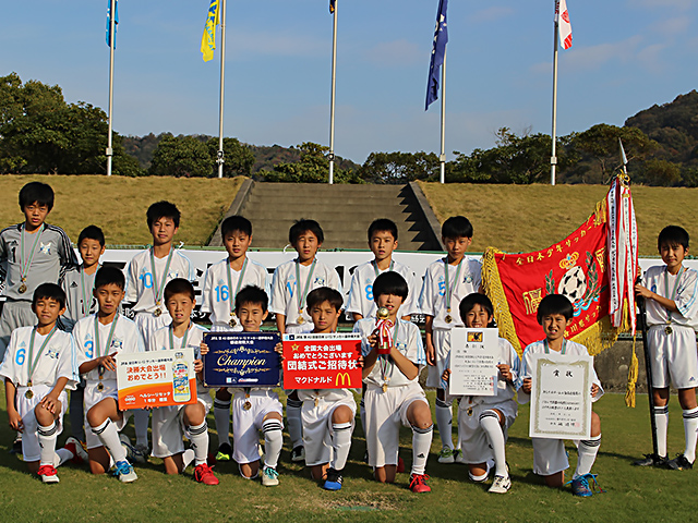 普段は得点を決めることが少ないのに、入れたことのないようなシュートを決勝戦で2点も決めることができて、少しびっくりしていますが、やっぱり嬉しいです。優勝したい気持ちが強かったので狙いました。サッカーはみんなで相手を崩して点を入れるところが好きです。全国大会でもみんなで頑張ります。