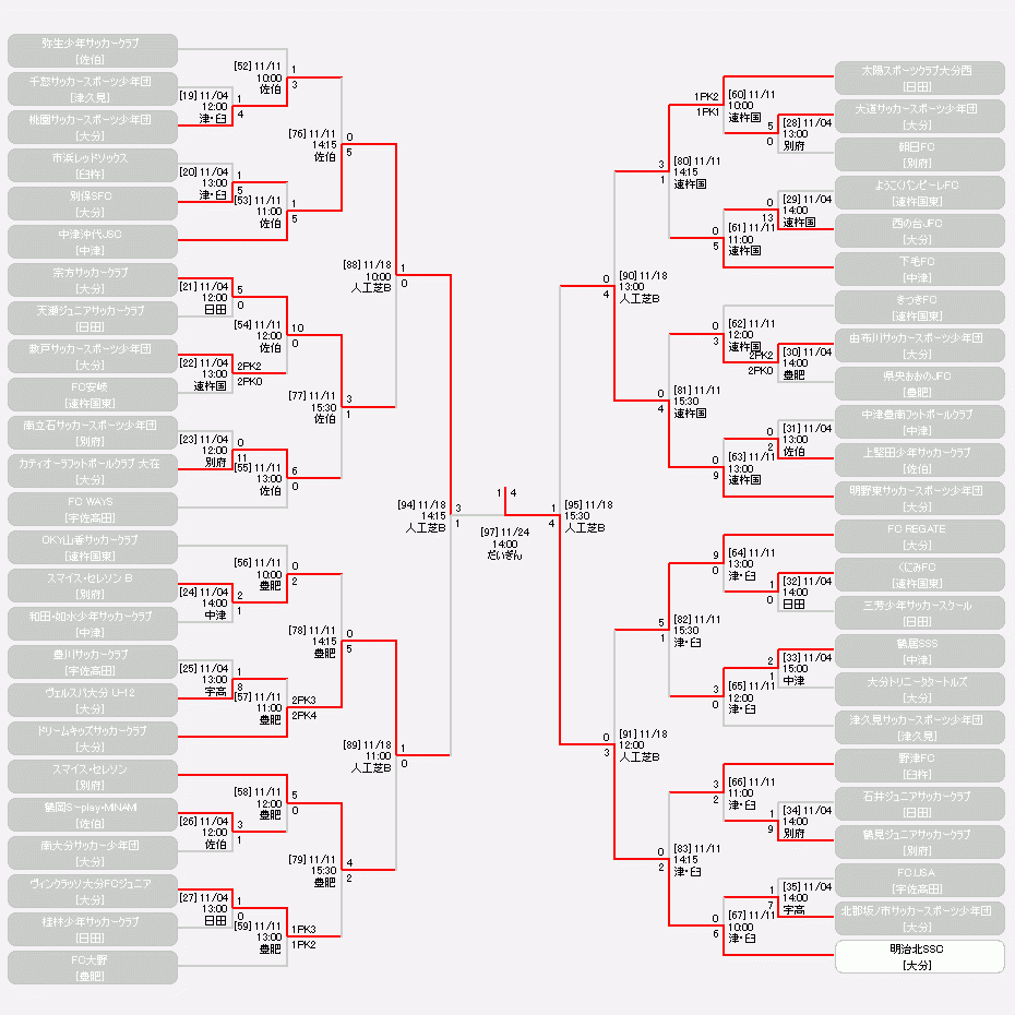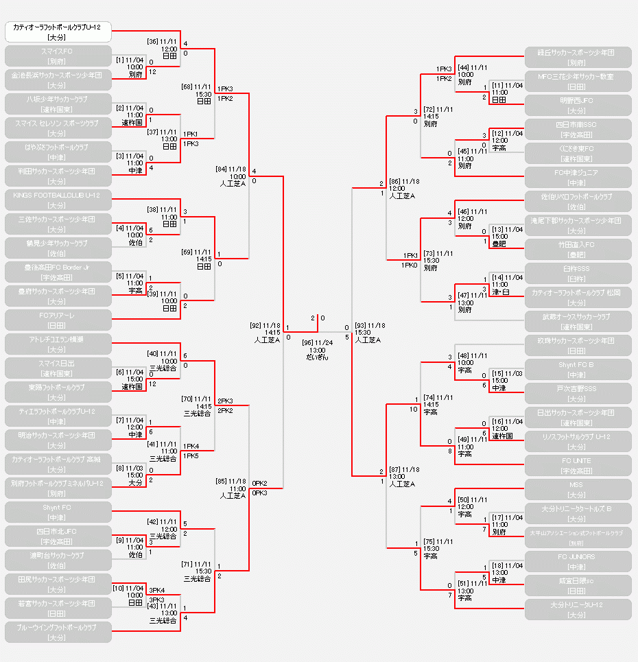 JFA 第42回全日本U-12サッカー選手権大会 大分県大会の決勝が11月25日(日)、大分スポーツ公園だいぎんサッカー・ラグビー場 Aコートで行われ、決勝カードは明治北SSCとカティオーラフットボールクラブU-12の対戦となりました。