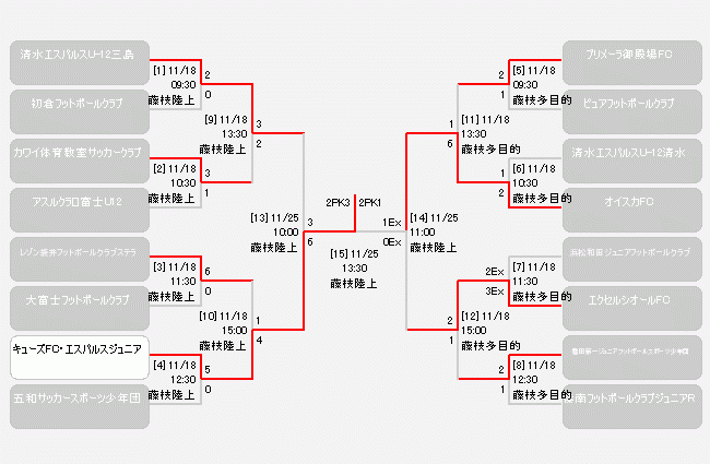 キューズFC・エスパルスジュニア 2-2(前半1-1、後半1-1、延長前半0-0、延長後半0-0)PK3-1 オイスカFC