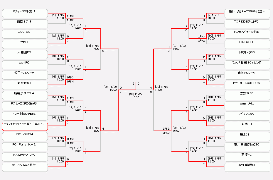 JFA 第44回全日本U-12サッカー選手権大会 千葉県大会の決勝が11月29日、千葉県白井市の白井運動公園陸上競技場で行われました。
