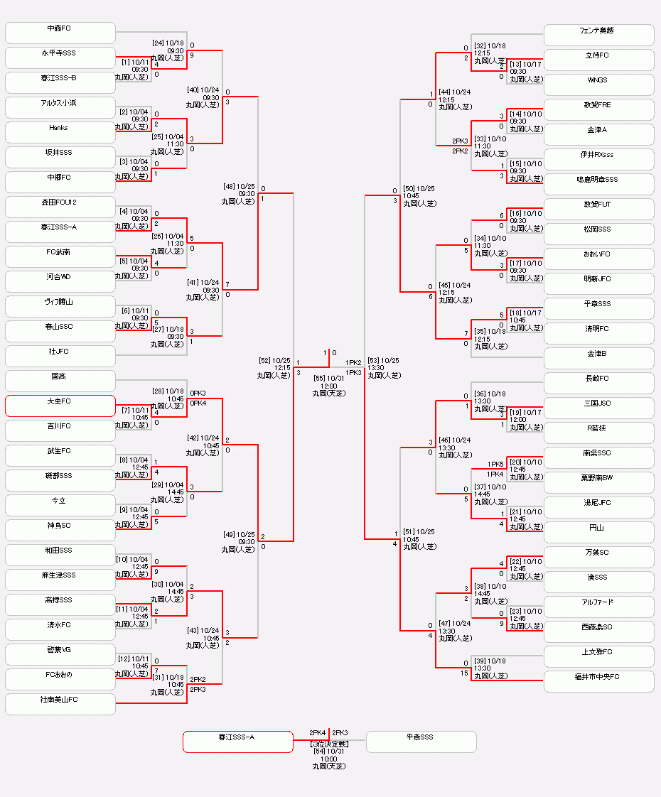 | 3位 / 4位 | 春江町サッカースポーツ少年団-A / 平章サッカースポーツ少年団 |