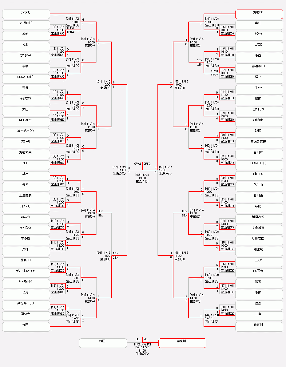 FCディアモジュニア 0-0(前半0-0、後半0-0、延長前半0-0、延長後半0-0)PK2-3 丸亀フットボールクラブ