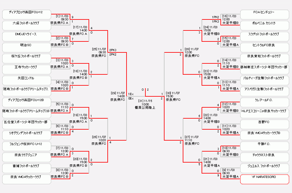 JFA 第44回全日本U-12サッカー選手権大会 奈良県大会の決勝が11月15日(日)、橿原公苑陸上競技場で行われました。
