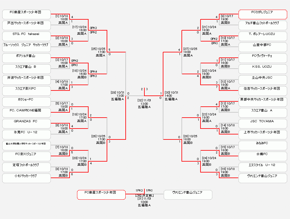| 3位 / 4位 | FC南星スポーツ少年団 / ヴァリエンテ富山ジュニア |