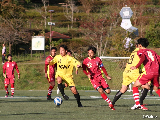 グループBでは、FC船橋(関東3/千葉)が逆転で首位通過を成し遂げました。初戦に続いて第2節も引き分けたものの、勝点2差で首位に立つ兵庫サッカークラブ(関西2/兵庫)との最終戦に突破の可能性を懸けます。すると、0-0で突入した後半に2戦連続で2ゴールを奪って勝利。同様に逆転突破を狙い前半だけで2点をリードしていた広島フォーティーズ(中国1/広島)が、焼肉ここからFC(四国1/高知)の怒とうの反撃を受け引き分けたこともあり、FC船橋が1次ラウンド突破を達成しました。