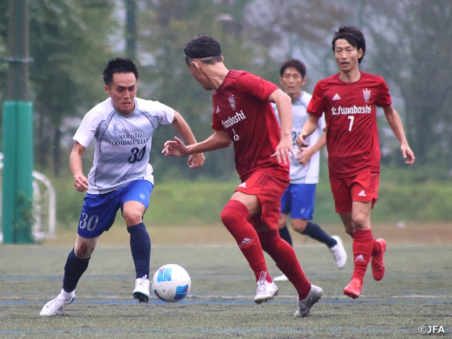 グループBでも第9回大会のチャンピオンが白星発進しました。FC船橋(関東1/千葉)がFC.鳴門(四国1/徳島)に3-0と快勝。設立3年目で全国大会初出場、さらに初勝利を挙げたKYOTO Family F.C.40(関西2/京都)を得失点差で上回り、首位に立っています。星ケ峯フットボールクラブ(九州/鹿児島)も含めて実力派のチームがひしめくグループは、最後まで激戦が予想されます。