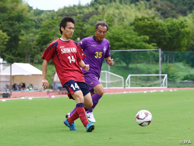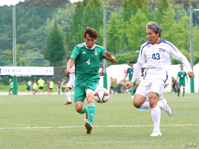 JFA 第17回全日本O-50サッカー大会が7月7日(土)、静岡県藤枝市で開幕。大会初日は16チームが4グループに分かれて行う1次ラウンドの第1節が行われました。