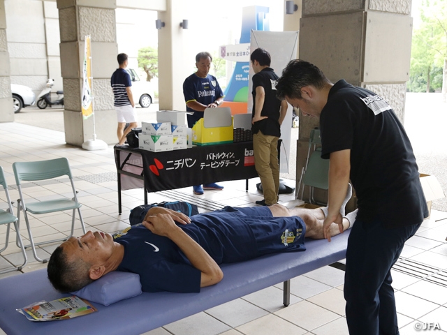 7月7日(土)から9日(月)にかけてJFA 第17回全日本O-50サッカー大会が静岡県藤枝市で開催され、JFA Youth & Development Programme(JYD)オフィシャルサポーターであるニチバン株式会社がテーピングサポートを実施しました。