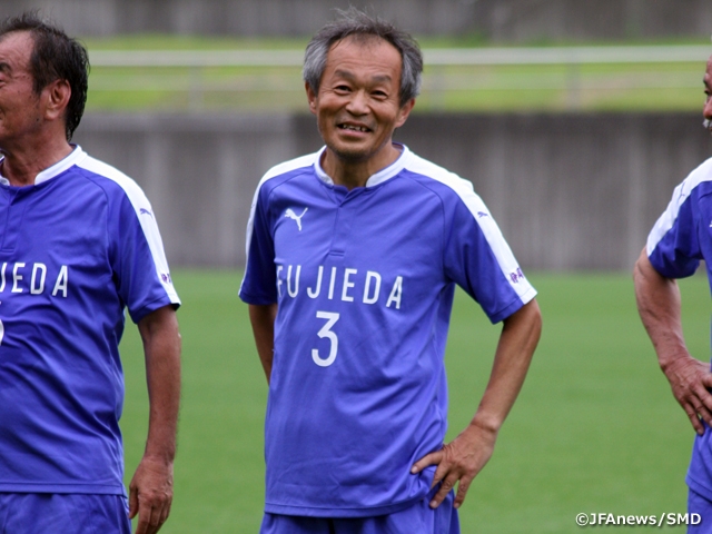 静岡県藤枝市で熱戦が繰り広げられたJFA 第19回全日本O-60サッカー大会は、京都O-60(関西第2代表/京都府)の初優勝で幕を閉じました。その参加選手の中から、開催地代表として全国からサッカー仲間を迎えつつ、地元での戴冠を目指した藤枝フットボールクラブ(静岡県)でキャプテンを務める青木弘悟選手に、シニアサッカーとこの大会の魅力について語っていただきました。