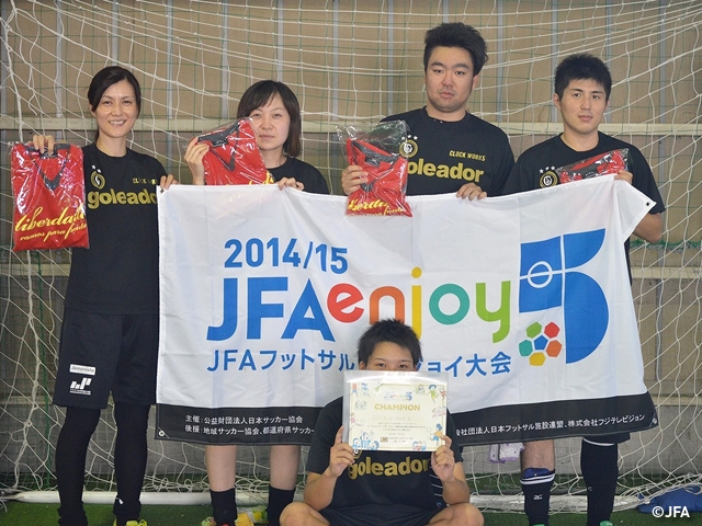 全国各地の民間フットサル施設などで熱戦が繰り広げられている「2014/2015 JFAエンジョイ5」。埼玉県上尾市の「ジョモニスタ上尾店」では、9月14 日(日)にミックスカテゴリーを開催し、JFAフットサル総合サイト「j-futsal」で登録、エントリーした4チームによる試合を行いました。
