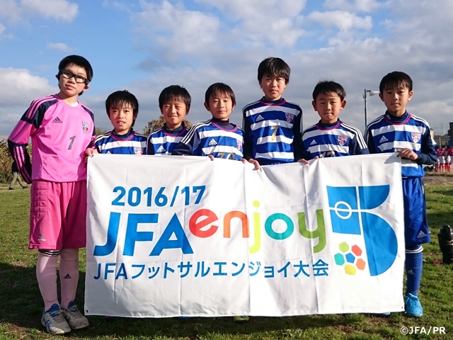 2016/2017 JFAエンジョイ5は、すべての人にフットサルの楽しさを届けたいという想いのもと、JFAが開催する、エンジョイ志向フットサルプレーヤーを対象とした全国大会です。フットサルの楽しさを、仲間とともにプレーする喜びを、そしてゴールを共有する感動と興奮を。日本各地たくさんのプレーヤーへ広げていきます。