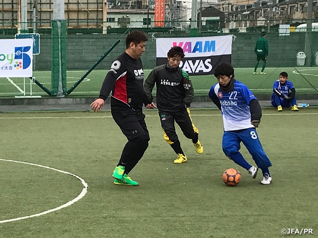 大阪府大阪市の「フットメッセ大正」では、1月28日(日)にO-35カテゴリーを開催し、5チームが参加しました。エムトシムが優勝、チームナカジが準優勝を決めています。O-35カテゴリーは、全国で開催されるファーストステージ(施設予選)、セカンドステージ(地域予選)を勝ち抜いた8チームによるファイナルステージを、3月3日(土)、4日(日)に武田テバオーシャンアリーナで行います。