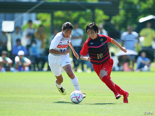 今年の優勝争いを牽引するのは2年連続3回目の日本一を狙うJFAアカデミー福島(東海2/静岡)です。昨年のタイトル獲得に貢献したMF松窪真心選手(#22)とMF林愛花選手(#23)を中心とした中盤での構成力は大会でも屈指。守備にも大会経験者のDF古賀塔子選手(#29)を擁するのはトーナメントを勝ち抜く上での強みとなるでしょう。