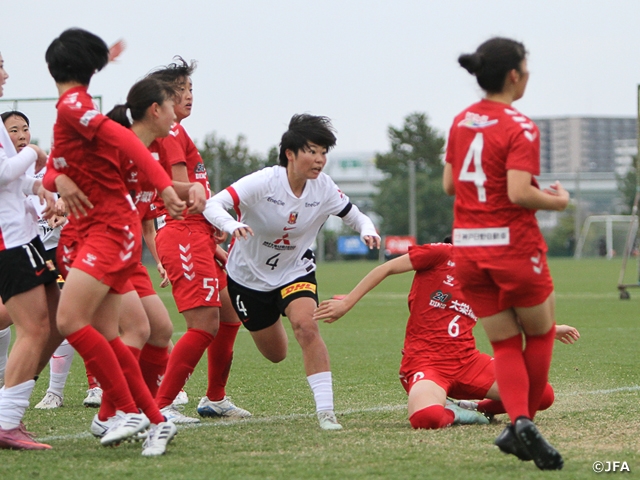 前半はほとんど決定機をつくれなかった大宮Wは、「2点リードされていたので、前から行くしかない、ということで勢いを持って入った」(茂木未宙選手)と後半立ち上がりに攻勢をかけ、茂木選手が果敢にシュートを放つ場面もつくります。