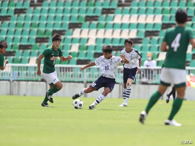 最初の失点は僕のミスだったので、絶対に逆転してやろうと思っていたのが、最後の決勝点に繋がりました。空中戦は僕の最大の武器なので、この大事な試合でも決めることができて良かったです。目標はこの総体、プレミアリーグ、選手権の3冠なので、まずは総体の1冠を取れたので、次は2冠獲れるように頑張ります。
