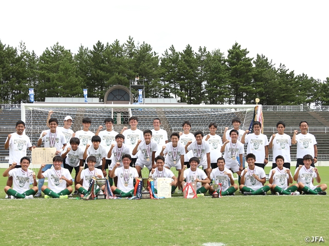 8月22日(日)に令和3年度全国高等学校総合体育大会 サッカー競技大会 男子の決勝を福井県・テクノポート福井総合公園スタジアムで開催しました。決勝の対戦カードは青森山田高校(青森)対米子北高校(鳥取)。延長の末、青森山田高校が2ー1で勝利し、2005年以来となる2回目の優勝を飾りました。