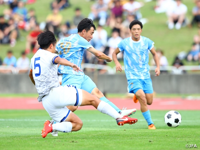 8月4日(金)に令和5年度全国高等学校総合体育大会サッカー競技大会 男子の決勝を北海道旭川市・花咲スポーツ公園陸上競技場で開催しました。決勝の対戦カードは桐光学園高校(神奈川/第1代表)対明秀日立高校(茨城)と、2年連続の関東勢対決。延長戦まで戦っても決着が決まらず、PK方式により明秀日立高校が初優勝に輝きました。