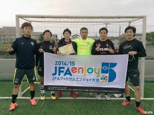 全国各地の民間フットサル施設などで熱戦が繰り広げられている「2014/2015 JFAエンジョイ5」。熊本県菊陽郡菊陽町の『フットサルパーク熊本』では、11 月 2 日(日)にエンジョイカテゴリーを開催し、JFAフットサル総合サイト「j-futsal」から登録・エントリーした12チームによる試合を行いました。エンジョイカテゴリーでは、32施設で開催しているファーストステージの各会場優勝チームをファイナルステージに招待します。男女年齢制限無し、エンジョイ志向のチームを中心に参加しやすいカテゴリーとなっています。