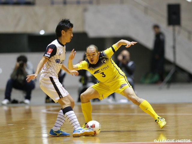 迎えた後半、追加点を狙う北海道と、同点に追い付きたい名古屋が攻撃的なゲームを演じます。互いに際どい場面をつくる中、ゴールへの強い意欲を見せた名古屋が拮抗した試合を動かします。24分に相手のゴール前の混戦から渡邉知晃選手が決めて試合を振り出しに戻すと、34分に吉川智貴選手が逆転となる3点目、37分にはシンビーニャ選手が4点目を挙げ、2点差に。このままリードを守った名古屋が2年連続2度目の優勝を飾りました。