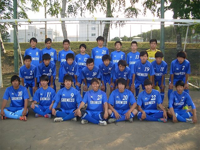 清水高校サッカー部は5年前に同好会から部に昇格し、現在部員は26名です。北海道は冬は雪でグランドを使うことができないため、体育館を使用してトレーニングを行い、フットサルの大会にも積極的に参加しています。予選では「失敗を繰り返しながら自分のレベルアップを図る」こと。ただし勝負事に関しては「負けないこと」を全員で統一し最後の最後ではみんなで体を張ったプレーで全国大会に駒を進めることができました。この全国大会でもたくさん失敗しさらに自分のレベルアップを目指し、チーム一丸となって1つでも多く試合をできるように頑張りたいと思います。