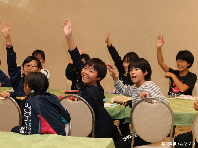 大会初日は4チームずつの予選リーグ戦を行いました。リーグ戦の結果により翌日の上位グループトーナメント、下位グループトーナメントへの進出が決まることもあり、時折冷たい風が吹く中、選手たちによる熱戦が繰り広げられました。夕食後、選手が宿泊するホテルでは各チームの指導者と審判、選手を対象に、付帯イベントとしてキヤノンVTRの上映や栄養・水分補給セミナーが行われました。水分補給の大切さや方法について学び、またリスペクトの映像を見たあとは選手同士でリスペクトについて話し合いを行うなど、充実した時間を過ごしていました。
