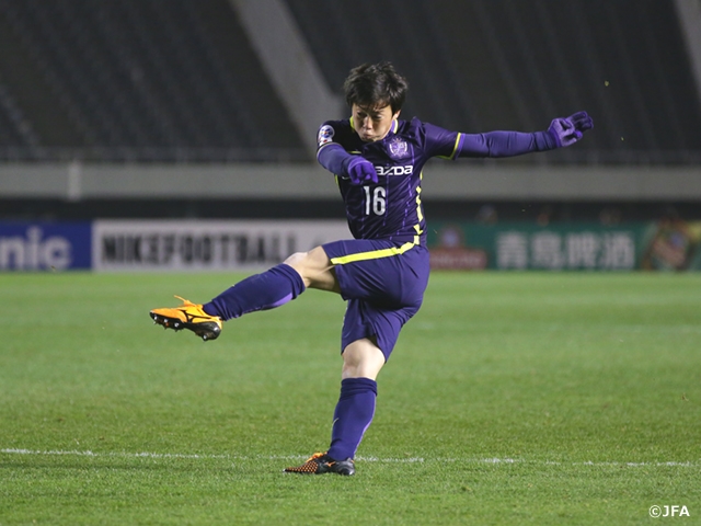 山東は2月9日のプレーオフでアデレード・ユナイテッドに逆転勝ちしての出場で、元ブラジル代表のマノ・メネーゼス監督の下、FWジエゴ・タルデッリ選手とDFジウ選手の現役ブラジル代表2人を中心に、無理をせずに攻撃の糸口を探しながら試合を進めます。30分にはゴール前で間接FKの機会を得ましたが、広島がうまく対応してゴールを割らせませんでした。