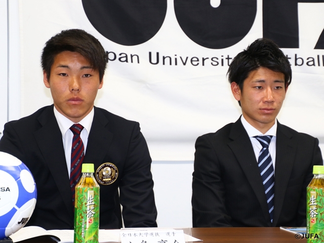 日本を背負って立つというのは、これが初めての経験になります。年代別代表に入ったことはありませんし、大学でも全日本に入ったことはありませんでした。こうして全日本大学選抜に選んでもらったことに身が引き締まる思いですし、やってやるぞという気持ちが強いです。ほかの地域選抜には3年生の選手がいますが、このチームは1、2年生だけで構成されています。ピッチに出れば学年は関係ないと思います。全日本という名前を背負っているからには、何がなんでも優勝するという気持ちをもって戦います。