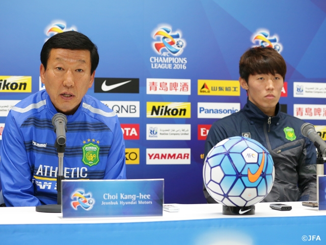 AFCチャンピオンズリーグ(ACL)2016もグループステージ第5節を迎えました。前節、アウェイで江蘇蘇寧から勝利を奪ったFC東京は現在、首位。今節の全北現代との試合に勝利すれば、ノックアウトステージへの進出が決まります。会見に参加した城福浩監督、米本拓司選手からもグループステージ突破に向けた意気込みを聞くことができました。本日は試合前日に行った両チームの公式会見の模様をお伝えします。