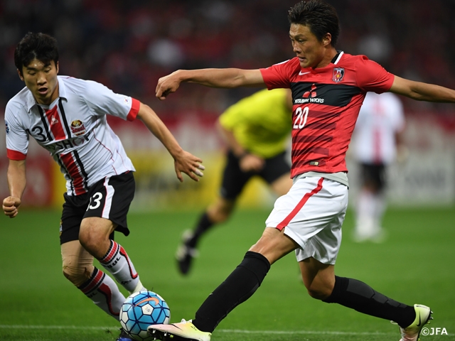 4強入りした2008年大会以来のノックアウトステージ進出の浦和は、立ち上がりから積極的に仕掛け、大きなサイドチェンジを交えて攻撃を展開します。