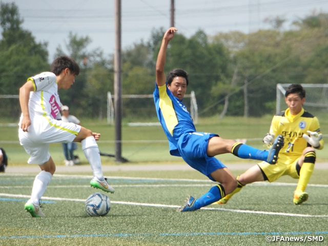2位のセレッソ大阪U-18(大阪)はヴィッセル神戸U-18(兵庫)と対戦。松岡大智選手のゴールで早い時間に先制しますが、後半アディショナルタイム、神戸に逆転され勝点を積み上げることはできませんでした。ホームにガンバ大阪ユース(大阪)を迎えた神戸弘陵学園高校(兵庫)は2点を先行しますが、食野亮太郎選手のゴールなどで3点を返されて惜敗。東福岡高校(福岡)と大津高校(熊本)が対戦した九州勢対決は後半アディショナルタイムに2ゴールが生まれる熱戦の末、東福岡高校が3-2で競り勝ちました。浮上の足掛かりを築きたい名古屋グランパスU18(愛知)と京都サンガF.C. U-18(京都)の一戦は、2-2で勝点1を分け合っています。