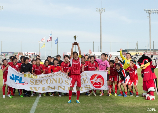 劇的なステージ制覇という意味ではHonda FCも負けていません。最終節まで3チームに1位の可能性があったセカンドステージを、最終戦の89分の決勝ゴールで制しました。強みはその得点力。年間を通して無得点だったのはわずか1試合のみ。さらにディフェンスの安定感も兼ね備え、わずか1敗でステージを制しました。天皇杯でもFC岐阜、松本山雅FC、グルージャ盛岡とJクラブ勢を撃破し、FC東京には敗れたものの互角の戦いを演じました。チームの成熟度に加え、自信と勢いをつけてこの大会に臨むHonda FCですが、一昨年にもチャンピオンシップを経験していることは大きなアドバンテージといえます。