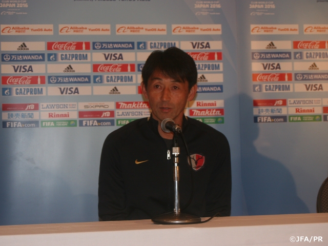 出場を本当に光栄に思います。日本の代表として世界にどのくらいチームの力が通用するか、しっかりと示したいと思います。昨年はサンフレッチェ広島がJリーグの高いレベルをこの大会で示しました。今年は鹿島がJリーグの代表としてよい戦いをして、決勝まで行ければと思います。チャンピオンシップは3戦とも厳しい戦いになって、消耗した部分もあると思いますが、今日の練習では非常にいい動きをしていると感じました。この世界大会に向けて、選手たちも自然と気持ちが高ぶっていると思います。