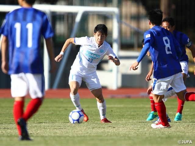 関東勢同士の対戦となった関東第4代表の順天堂大学と慶應義塾大学の試合は、前半終了間際にコーナーキックのこぼれ球を溝渕雄志選手が詰めて、慶應義塾大学が先制します。しかし後半開始早々の49分、フリーキックに柳澤亘選手が頭で合わせて順天堂大学が同点に追いつくと、試合終盤の85分には1年生FWの浮田健誠選手が右足を振り抜いて逆転。後半のチャンスを確実に決めた順天堂大学が、関東対決を制しました。