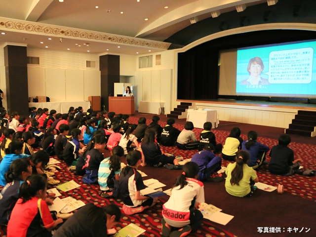 試合終了後は室蘭プリンスホテルで、選手を対象に、キヤノン株式会社によるVTR上映やホクト株式会社による食育セミナー、JFAナショナルトレセンコーチによるリスペクトワークショップが行われました。食事の後には指導者研修会が開催され、大会のあり方についての意見交換や、女子トレセンの活動についての情報交換が行われました。