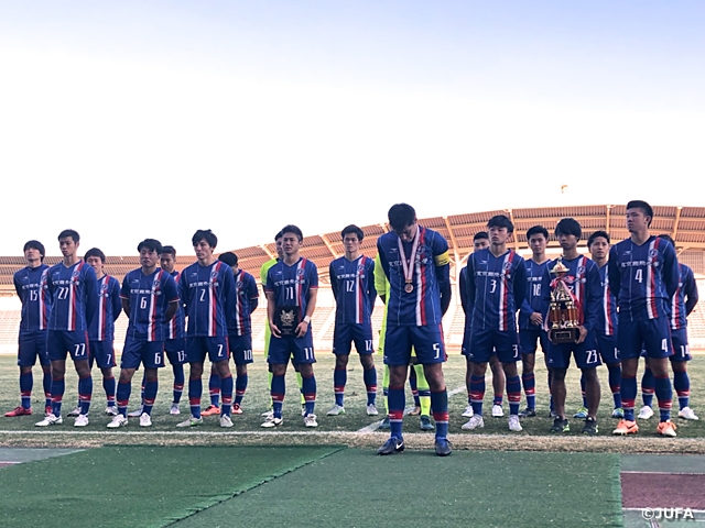 前半は一進一退の攻防を繰り広げていた両校でしたが、時間とともに試合の流れは流通経済大学に。しかし追加点は生まれず、試合は延長戦に突入しました。延長戦に入ると流通経済大学が立て続けにチャンスを作りますが、いずれもシュートが枠をとらえきれません。そんな中、延長前半の101分に流通経済大学の宮津祥太選手がロングボールに反応。ヘディングで競り落とすと、そのままドリブルで一気に相手を抜き去り、ゴール前に上がってきた星野秀平選手へとパスを送ります。星野選手はこのパスを落ち着いてゴールに流し込み、流通経済大学が勝ち越しに成功。延長後半戦に入っても東京国際大学の攻撃を封じきった流通経済大学が2-1で勝利し、3年ぶり2回目となる決勝進出を果たしました。