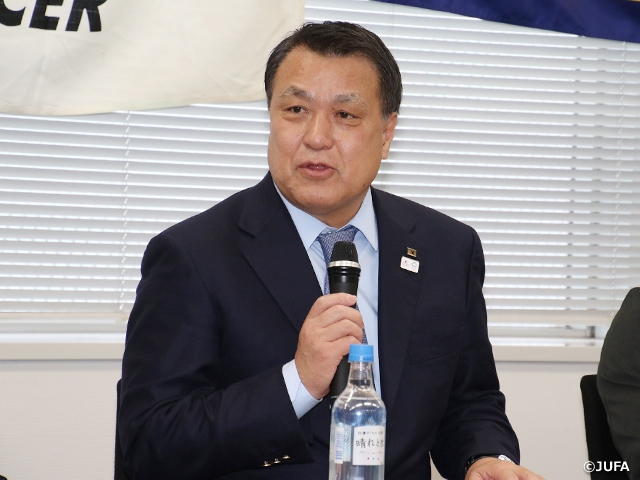 会見には、公益財団法人日本サッカー協会・田嶋幸三会長、一般財団法人全日本大学サッカー連盟・松本健一副会長、同連盟中野雄二技術委員長、そして特別協賛社の株式会社デンソー総務部社会貢献推進室長・布施浩二氏らが登壇しました。