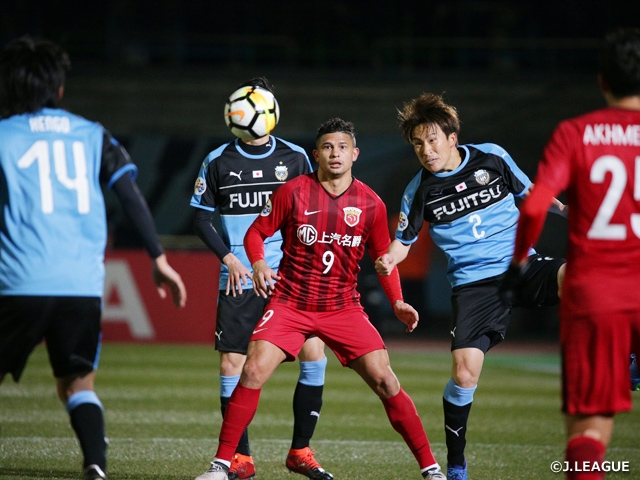 FWフッキ選手とMFオスカル選手の元ブラジル代表コンビにFWエウケソン選手、中国代表FWウー・レイ選手らが絡んで積極的に攻める上海上港は、前半23分、ペナルティエリアで左クロスを受けてエウケソン選手が胸で巧みにコントロールして右足を振ると、シュートは川崎GKチョン・ソンリョン選手の手を弾いて左ポストに当たり、ゴールの中へ吸い込まれて先制します。