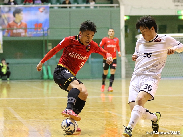 第23回全日本フットサル選手権大会の決勝ラウンドが9日(金)、駒沢オリンピック公園総合運動場体育館で幕を開けました。1次ラウンドを勝ち抜いた6チームに加え、Fリーグ2017/2018チャンピオンの名古屋オーシャンズ、同2位のペスカドーラ町田の計8クラブが、日本一の座を懸けて争います。この日は準々決勝4試合が行われ、翌10日(土)に行われる準決勝への進出チームが決定しました。