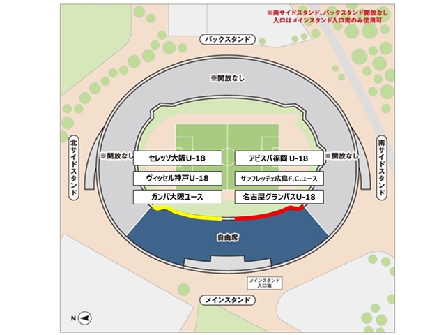 観戦される方は、メインスタンド入口南よりご入場ください(メインスタンドのみの開放となります)。