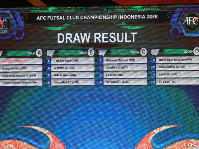 AFCフットサルクラブ選手権インドネシア2018の組み合わせ抽選会が18日、インドネシアのジャカルタで開催されました。