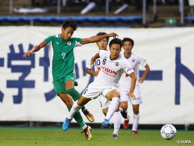 大学サッカーの夏の全国大会『2018年度 第42回 総理大臣杯全日本大学サッカートーナメント』の決勝戦が、9月9日(日)にキンチョウスタジアムで行われました。ここ数年は、ベスト4を関東勢が独占するなど関東地域の大学の強さが際立っていましたが、今大会では前年度王者の法政大学が初戦で敗退するなどの波乱もあり、ベスト4には東海代表の中京大学、関東代表の明治大学、関西代表の大阪学院大学と大阪体育大学が残りました。準決勝では中京大学と大阪学院大学が敗れ、決勝戦は7年ぶりの優勝を狙う大阪体育大学と、昨年に続いての決勝進出となる明治大学の対戦となりました。
