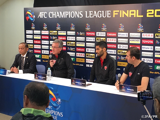 ACL決勝の第1戦をホームで迎えることになりました。ホームアドバンテージを生かし、アグレッシブなサッカーで勝ちたいと思います。明日の試合に向けてチーム全体としてのモチベーションは高く、精神的にもフィジカル的にもコンディションは良いです。自信をもって試合に臨みたいと思います。ペルセポリスは、規律があり組織的なプレーをするチームという印象があります。前線の2トップにも組織的にボールをつないでくるので警戒しないといけませんが、しっかり対策を練って臨みたいと考えています。
