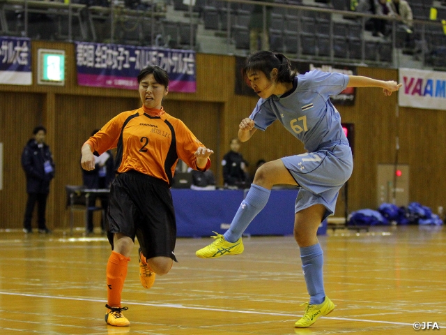 前回大会では、十文字中学校(東京)と秋田L.F.C.ユース(秋田)が決勝に進出。試合開始直後に、2得点を挙げた十文字中がゴールラッシュを見せます。ユースオリンピックのU-18フットサル日本女子代表となった阿部美楽乃選手のハットトリックの活躍もあり、圧倒的な攻撃力を見せた十文字中が6-0と大差をつけて、3度目の優勝を果たしました。