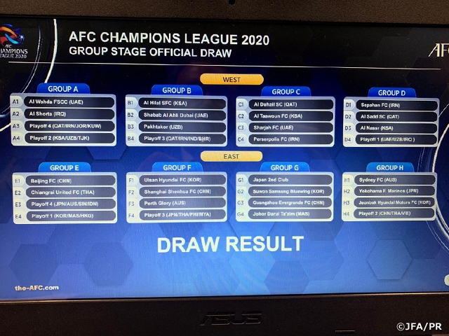 AFCチャンピオンズリーグ2020オフィシャルドロー(組み合わせ抽選会)が10日、マレーシアのクアラルンプールで行われ、下記のとおりグループステージの組み合わせが決まりましたのでお知らせいたします。